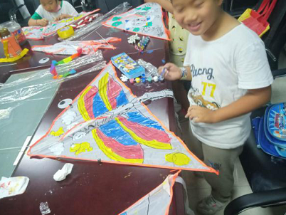 陈家庄社区爱心托管暑期活动“画风筝”。