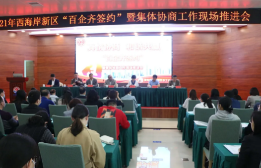 学党史办实事 “百企齐签约”——青岛西海岸新区总工会开展“百企齐签约”暨集体协商 工作现场推进会